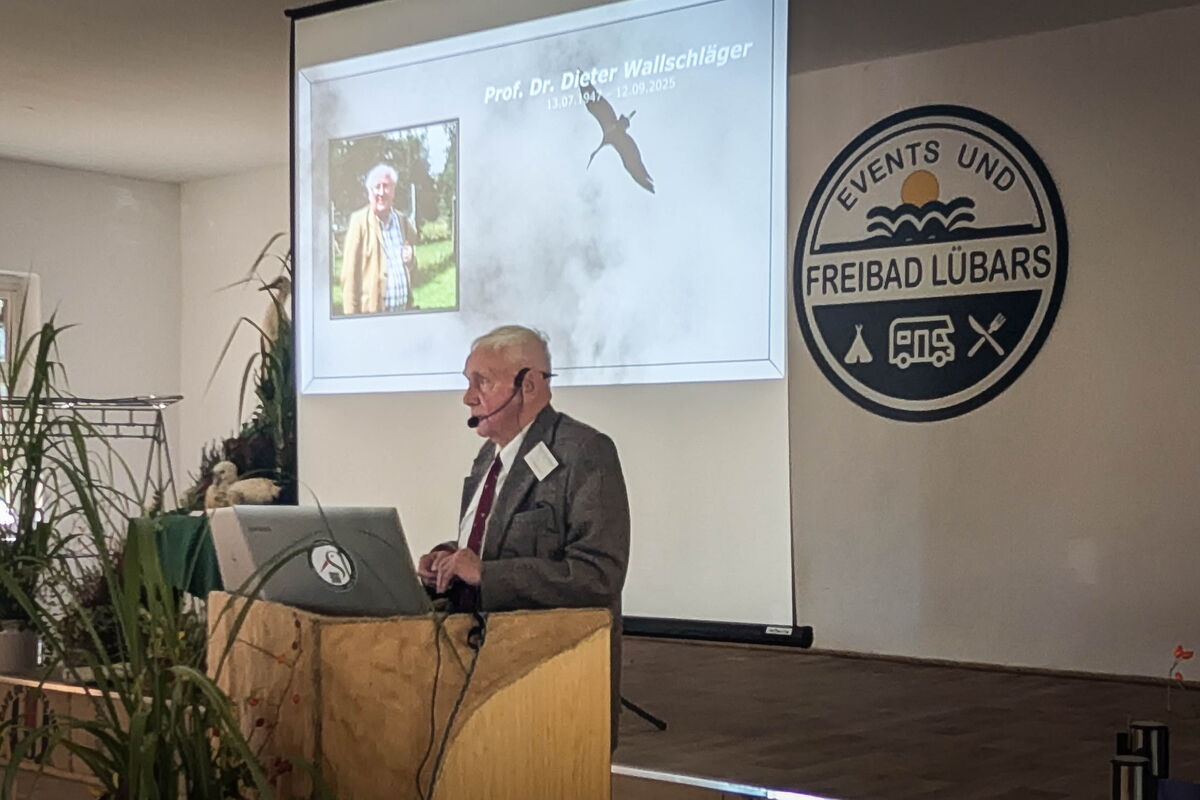 Sehr bewegend wurde es beim Tagesordnungspunkt "in memoriam" - Gedenken an die engagierten Natur- und Weißstorchschützer, die in den vergangenen 12 Monaten von uns gegangen sind. Dr. Christoph Kaatz würdigte sehr emotional das Wirken des mit ihm persönlich eng befreundeten Prof. Dr. Dieter Wallschläger, der nur knapp 4 Wochen vorher verstorben war.