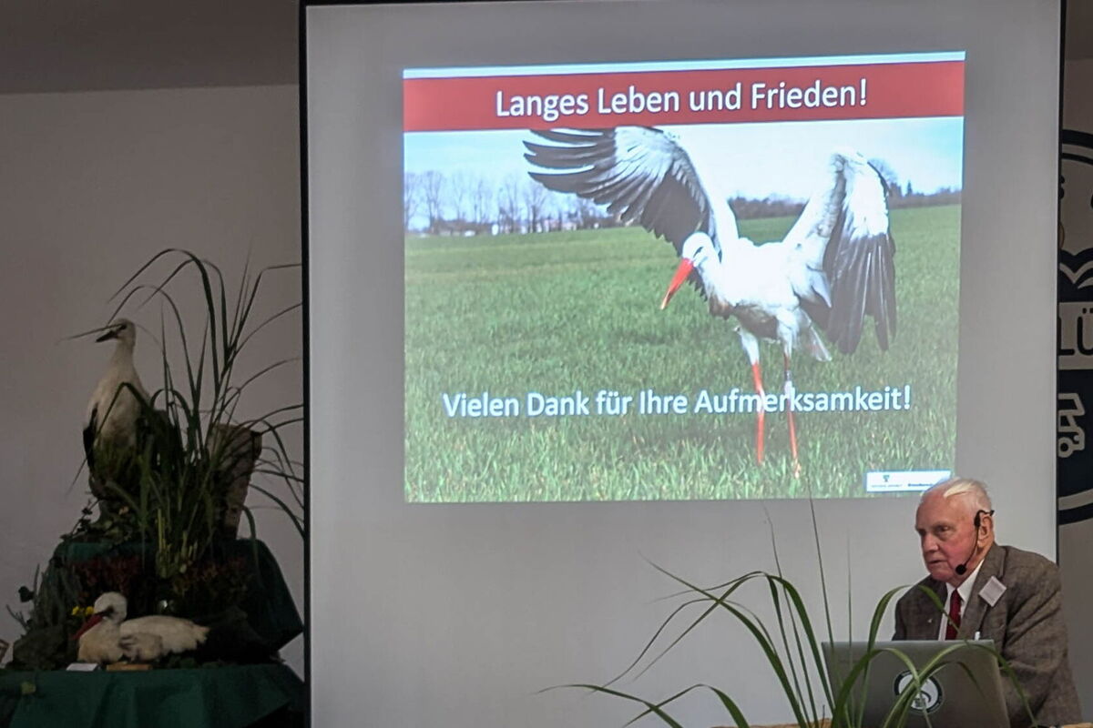 Dr. Michael Kaatz erinnerte an Dr. Eugeniusz Nowak (08.06.1933-18.12.2024) dessen Kraft und Engagement für den Naturschutz auch einen großen Einfluss auf seinen persönlichen Werdegang hatten. Ihm ist unter anderem die Entwicklung der Weißstorch-Telemetrie zu verdanken.