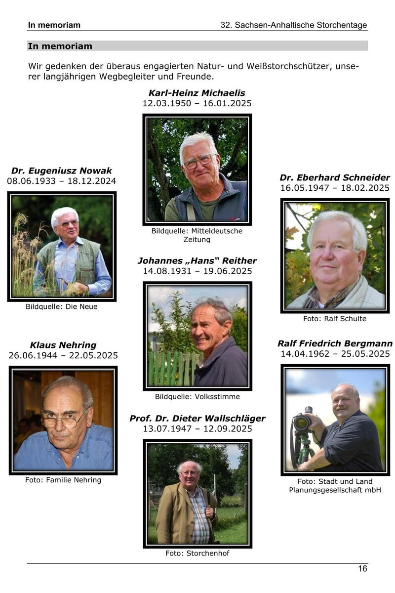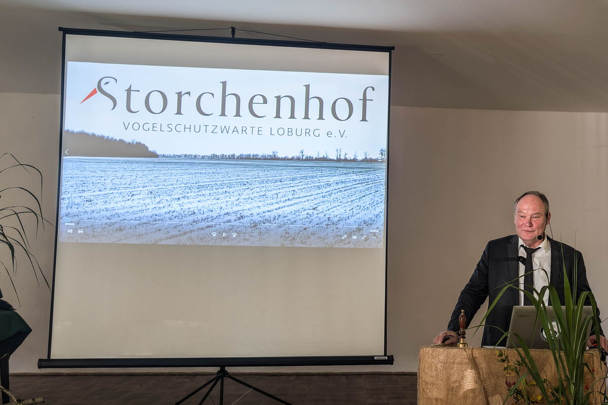 Die Weißstorchbetreuerin des Landkreises Lutherstadt Wittenberg, Angela Zech-Hofmann, ehrte mit ihren Worten den zu Beginn des Jahres verstorbenen Karl-Heinz Michaelis (12.03.1950-16.01.2025), dessen Nachfolge sie angetreten hatte.