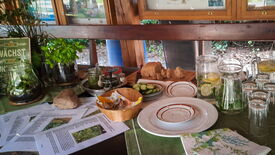 Für das leibliche Wohl sorgen Kaffee und kleine Leckereien unter dem großen Pavillon. Gegen ein paar Euro in die Kasse des Vertrauens kann hier geschlemmt werden. Die nötige Würze geben essbare Wildkräuter, die nicht nur Insekten (einer Grundnahrungsquelle der Störche), sondern auch uns gut schmecken. Auch in flüssiger Form! Denn auch der beliebte Loburger Storchenbiss kann verkostet werden.
