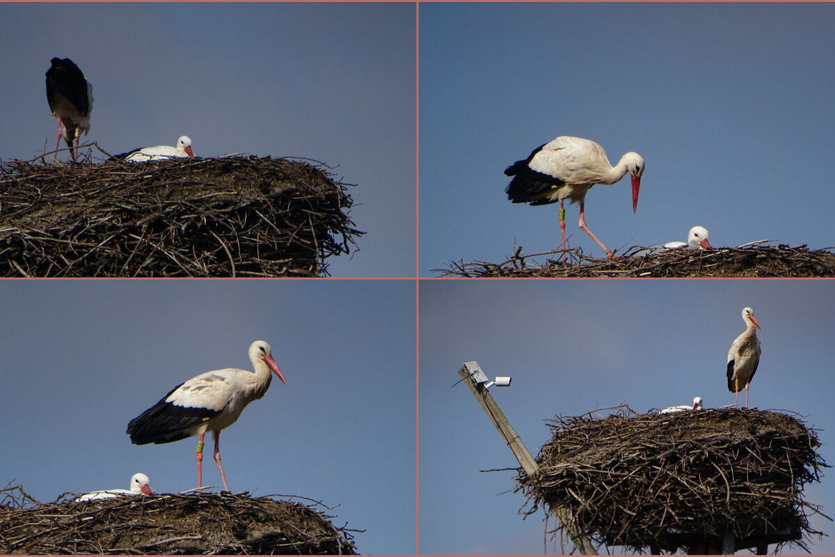 Jetzt hat Wally mit dem unberingten Haupthorststorch den Haupthorst gegen die unberingte Störchin(?) verteidigt nur um danach vom Haupthorsthausherren auch noch aus dem Horst geschubst zu werden.
