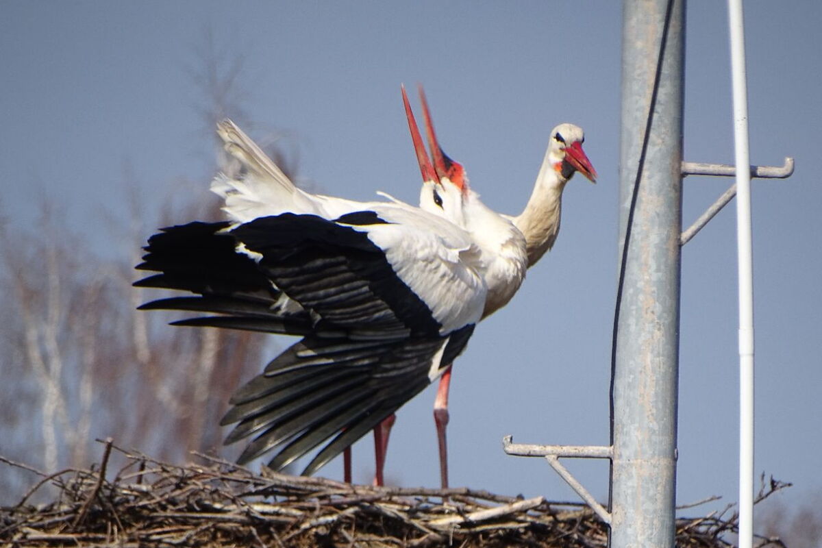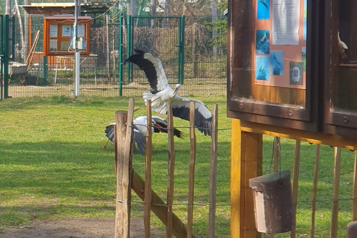 Benjamin zeigte der unberingten Störchin erst einmal, wer hier das Sagen hat und ihr kräftig den Marsch geblasen Da war von Wally aber noch keine Spur.