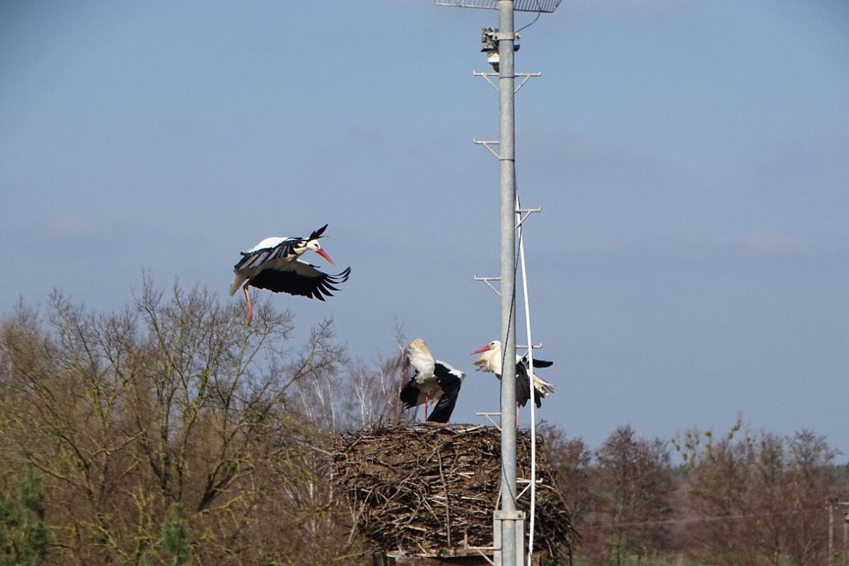 Nach kurzer Stippvisite auf dem Haupthorst zog es Wally kurz auf die noch sehr nassen Wiesen hinter dem Storchenhof um dann wieder zu Benjamin in den Wiesenhorst zurückzukehren.