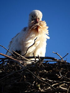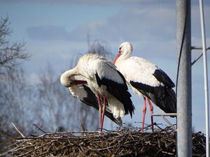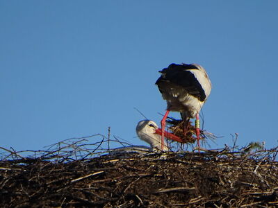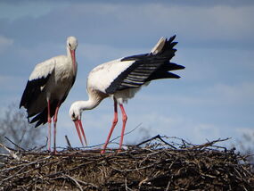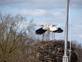 Auf dem gesamten Storchenhof schallt das Geklapper der Störche.