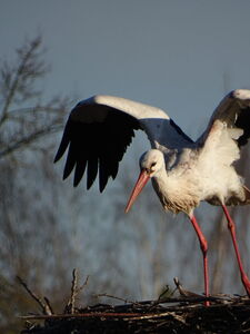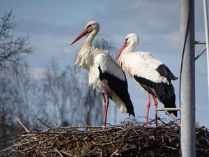 Die Störchin flog sogar eine Attacke gegen den Wiesenhorst; danach er.
