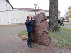 Im Anschluss wurde vom Bürgermeister noch eine Plakette mit der Aufschrift „965 - 2015 / 1050 Jahre Loburg“ an einen Gedenkstein auf dem Loburger Marktplatz angebracht.