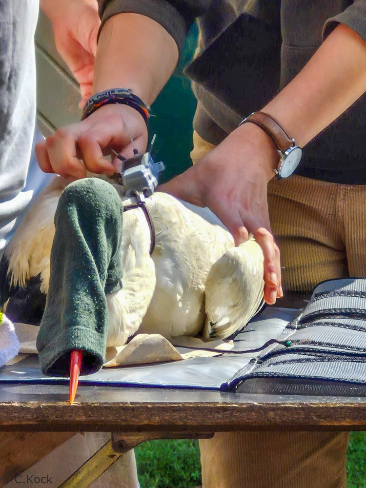 Mika, der Brutstorch in Loburg in unmittelbarer Nähe zum Storchenhof werden wollte, hatte wahrscheinlich einen Verkehrsunfall und Chocolate aus dem Kreis Stendal, die flugunfähig und mit einer Fingerfraktur gefangen werden konnte.
