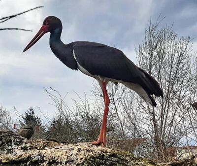 Schwarzstorch im Auslaufgehege