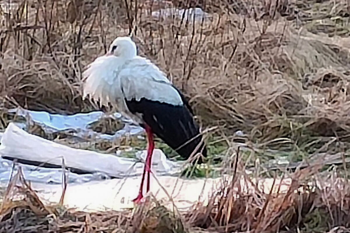 "Ein Weißstorch flog zum zugefrorenen Fluss Nes im Autonomen Kreis der Nenzen. Freiwillige retteten den müden Vogel und gaben ihm ein Zuhause. Jetzt muss der Vogel nach Moskau transportiert werden. Ein seltener Gast wurde Ende November 2024 in der Arktis gesichtet. Anwohner untersuchten den Vogel und stellten fest, dass er beringt war. „Wie und warum landete der Vogel so weit von seinen gewohnten Lebensräumen entfernt? Ein Versagen der internen Navigation während des Vogelzugs oder vielleicht die Schwäche des Vogels und seine Unfähigkeit, den starken Südwinden der letzten Tage zu widerstehen? Die Gründe können unterschiedlich sein “, erklären die Mitarbeiter des Nenzen-Naturreservats. Es ist fast unmöglich, im Autonomen Kreis der Nenzen einen Weißstorch zu treffen. Höchstwahrscheinlich flog er aus Frankreich, Deutschland, Belgien oder Kroatien nach Russland. Nur dort werden die Vögel mit gelben Ringen mit Seriennummer zwischen Oberschenkel und Fußwurzel gesichert, erklärte das Reservat. Spezialisten stellten eine Anfrage an die Beringungszentren. Danach wird klar, woher der Storch kam. Freiwillige haben den Vogel gerettet, ihn aber noch nicht nach Hause zurückgebracht. „Der Storch muss an Spezialisten übergeben werden. Aufgrund der abgelegenen Lage ist dies äußerst schwierig. Das nächstgelegene Rehabilitationszentrum in Moskau, Krähennest, erklärte sich bereit, den Vogel aufzunehmen “, sagte das Storchenhilfezentrum White Stork House.
