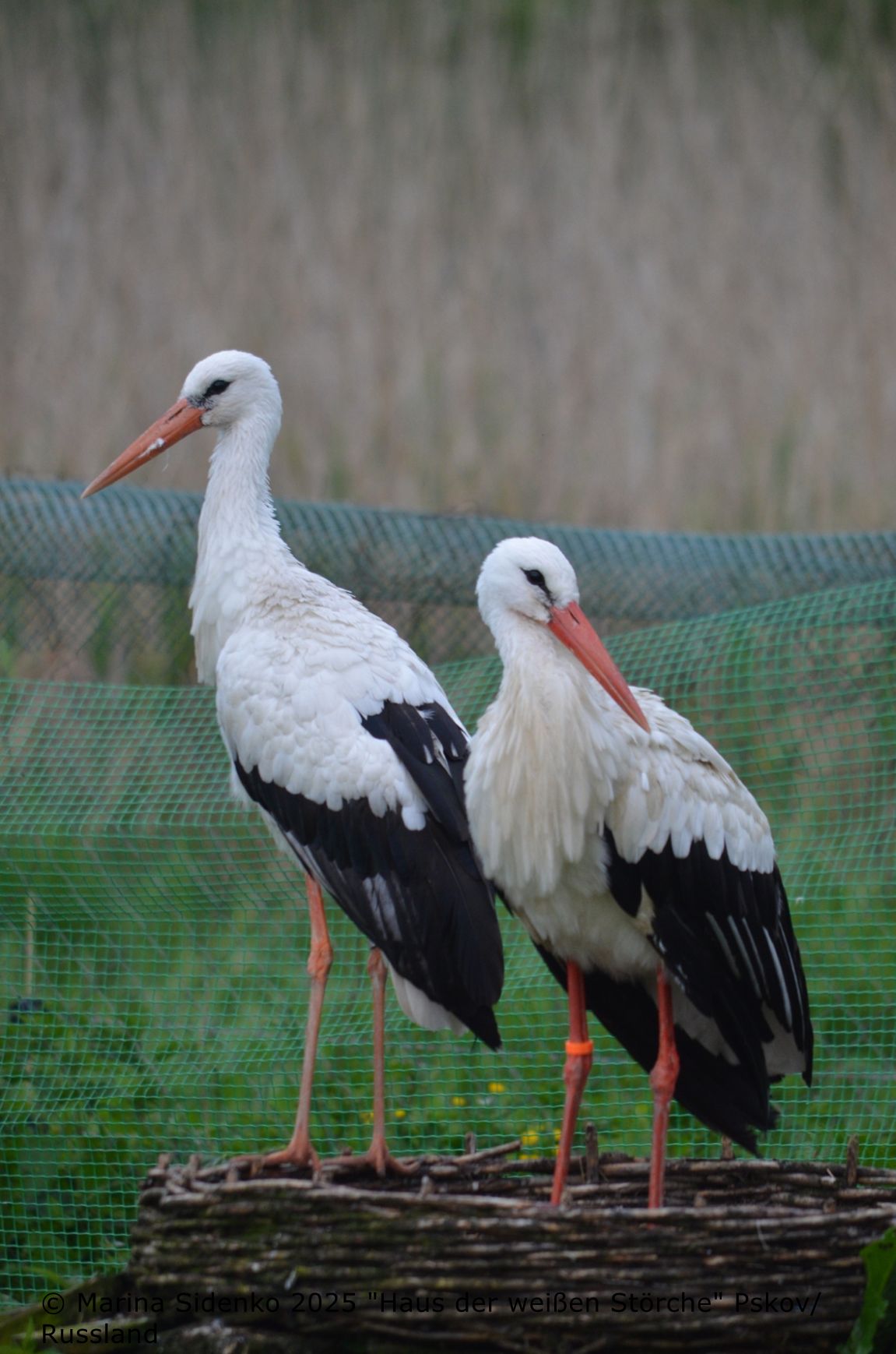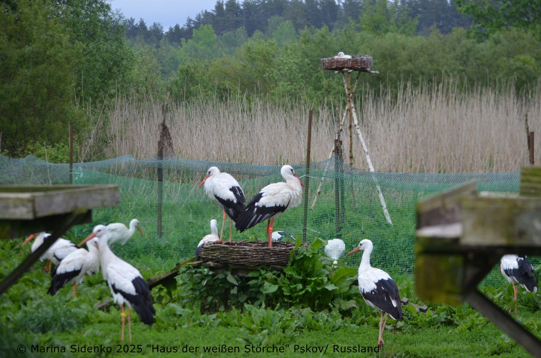 Eugen, der erwachsene Storch, der nach einer Kollision bei uns auf dem Storchenhof gesund gepflegt wurde? Er wurde Anfang August 2025 in die Freiheit entlassen. Wenige Wochen später wurde im Norden Russlands bei Eis und Schnee ein Storch mit einem gelben Ring entdeckt und gesichert... Ende April wurde Eugen/Shenja von Marina Sidenko wieder in die Freiheit entlassen. Der Ring dient ihr zur Identifizierung des Storches von weitem. Aktuell hält er sich wohl noch in der Umgebung an der westlichen Grenze Russlands auf.