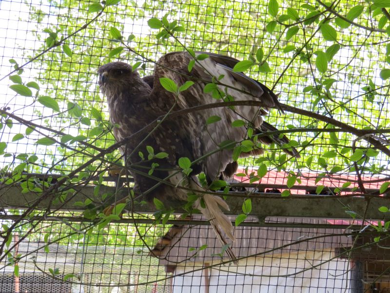 Ihm fehlen außerdem 2 Krallen, weshalb er wohl nicht mehr gut jagen kann, da sich Mäuse und andere Kleinsäuger nun schlechter erbeuten lassen. Der Bussard ist 1 Jahr jung und wird nun auf dem Storchenhof aufgepäppelt. Eine Auswilderung ist derzeit noch nicht sicher.