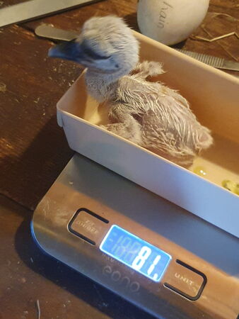 Der zweite kleine Wildenhainer ist letzte Nacht geschlüpft und hat sich bei seiner ersten Fütterung heute früh gleich ordentlich den Hals vollgepackt. Mit 81g Schlupfgewicht ist er sogar knapp größer als sein 2 Tage älteres Geschwister