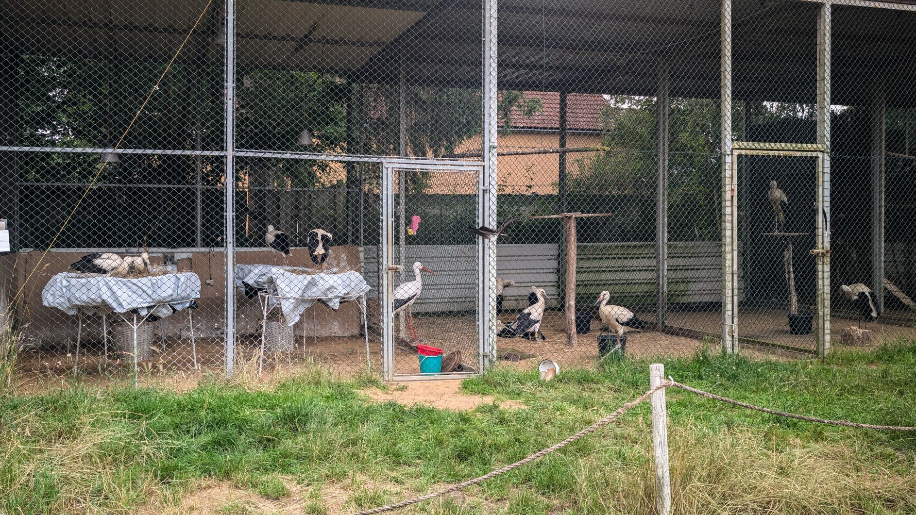 Und in der Oberklasse sozusagen: ja, hier ist die letzte Station vor der Auswilderung. Hier haben die jungen oder genesenen Störche die Gelegenheit ihre Flügel richtig einzusetzen und "gesellschaftsfähig" zu werden. Meist haben wir auch erwachsene Tiere hier in der Freiflugvoliere, derzeit zum Beispiel Otto, die zeigen den Youngstern auch schon mal, wo oder wie es langgeht.