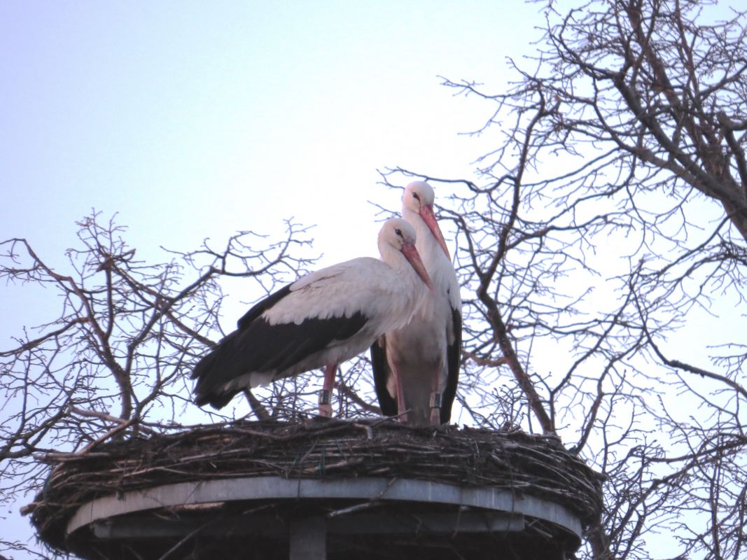 Am Nachmittag des 27. März sind auf dem Storchenhorst „Ecke Dammstraße“ erstmals in diesem Frühjahr zwei Störche gesichtet worden.