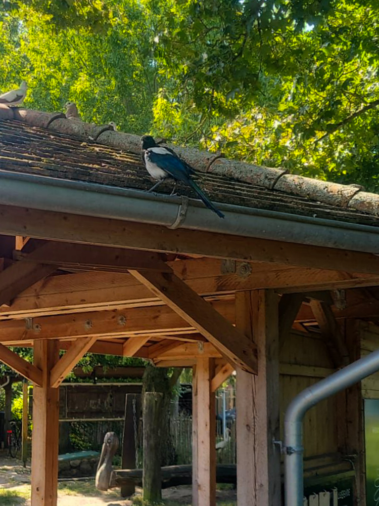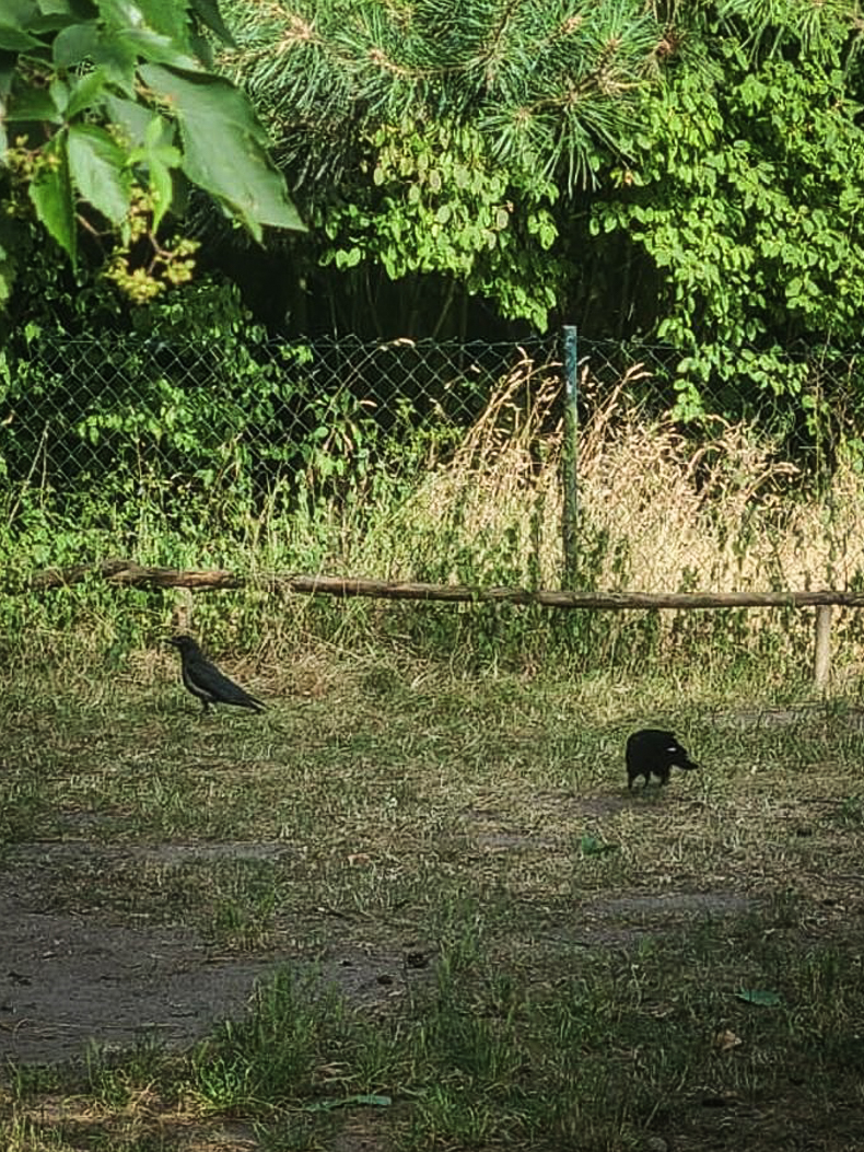 Die jungen Krähen treiben sich weiterhin auf dem Gelände herum und halten die Besucher zusätzlich bei Laune und so manch einen Mitarbeiter auch mal von der Arbeit ab.