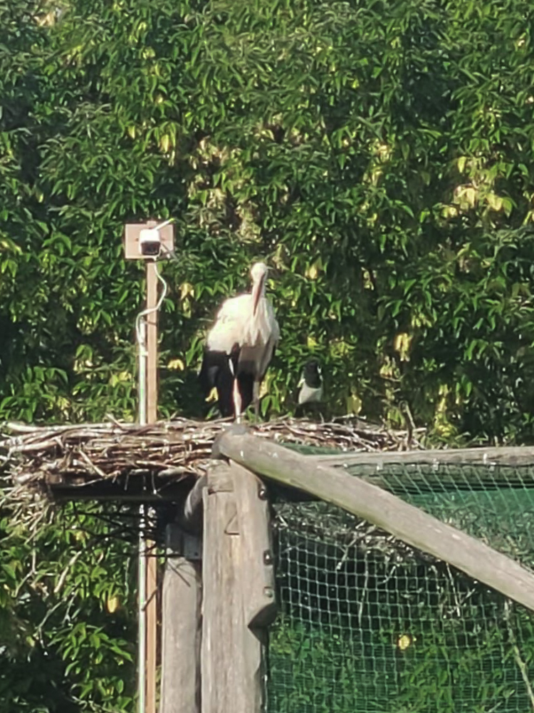 ... sogar das Storchennest ist nicht sicher vor ihr! Sie weiß aber auch, wann man dem Storch lieber aus dem Weg geht!