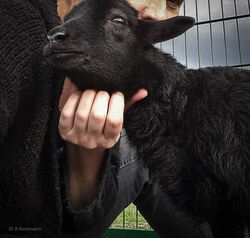 Über fehlende (adoptiv-)mütterliche Zuwendung und Streicheleinheiten braucht sich das kleine Schaf, das wohl in der Herde verbleiben wird, nicht beklagen