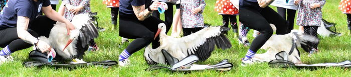 Sporty Storchenhofnummer 2064 aus Drewen (Ostprignitz-Ruppin) wurde von uns wegen eines Gefiederschadens behandelt.