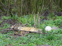 Er demontiert den alten Ausstellungshorst und baut auf Karolines Grab ein Nest.