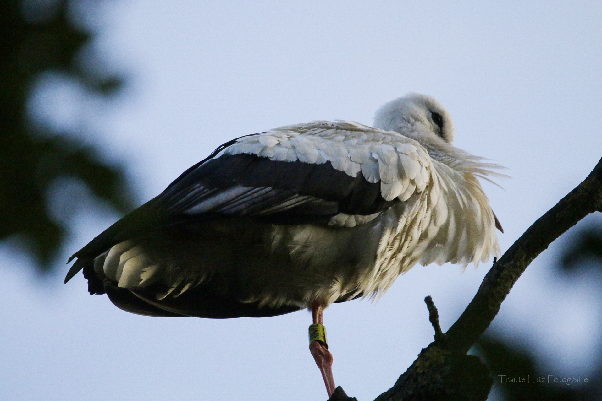 Zu meiner Freude kam er zurück in meine Richtung, zog aber vorbei und hält sich seit einigen Tagen bei Lüchow auf. Da er nun schon mehrere Nächte in Folge immer auf ein und demselben Baum ruhte, wagte ich die 1stündige Fahrt am Abend, die Chancen standen nie so gut. Ich fuhr also gestern, am 16.7.25, direkt nach Neritz, parkte mein Auto, sah kurz nach links durch die Scheibe, und mein Blick fiel sofort auf einen Storch in einer Baumkrone. Mit dem Teleobjektiv konnte ich Ringnummer und Sender gut erkennbar ablichten. Es war Seppl!! Um 21:40 Uhr.
