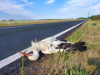 Am Nachmittag des 05.06. erhielten wir Anrufe von uns unbekannten Menschen, dass an der B246 ein Storch liegen würde.