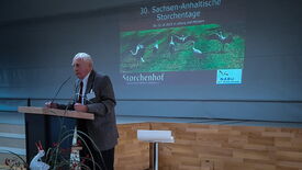 Dann übernahmen die Sprecher der NABU-Bundesarbeitsgruppe Weißstorchschutz die Führung durch die Veranstaltung. Bernd Petri stellte die anwesenden Sprecher Helmut Eggers und Sophie Humpert vor und begrüßte alle Anwesenden zum 30. Sachsen-Anhaltischen Storchentag und zum 44. Geburtstag der NABU-Bundesarbeitsgruppe Weißstorchschutz