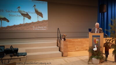 Es folgten die Grußworte von Dr. Christoph Kaatz, dem Gründer des Storchenhofes und Mitbegründer der NABU-Bundesarbeitsgruppe Weißstorchschutz und aus der regionalen Politik: