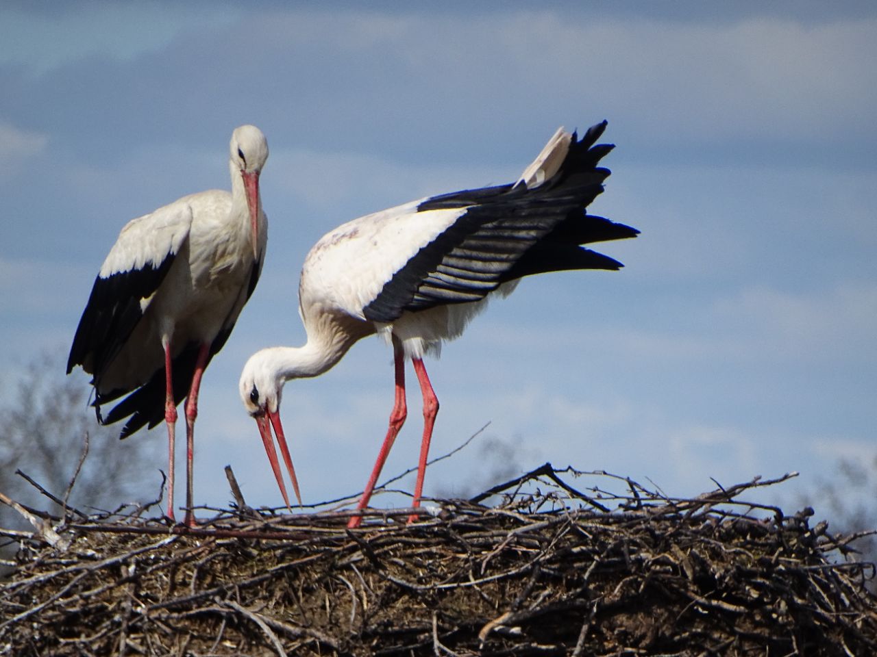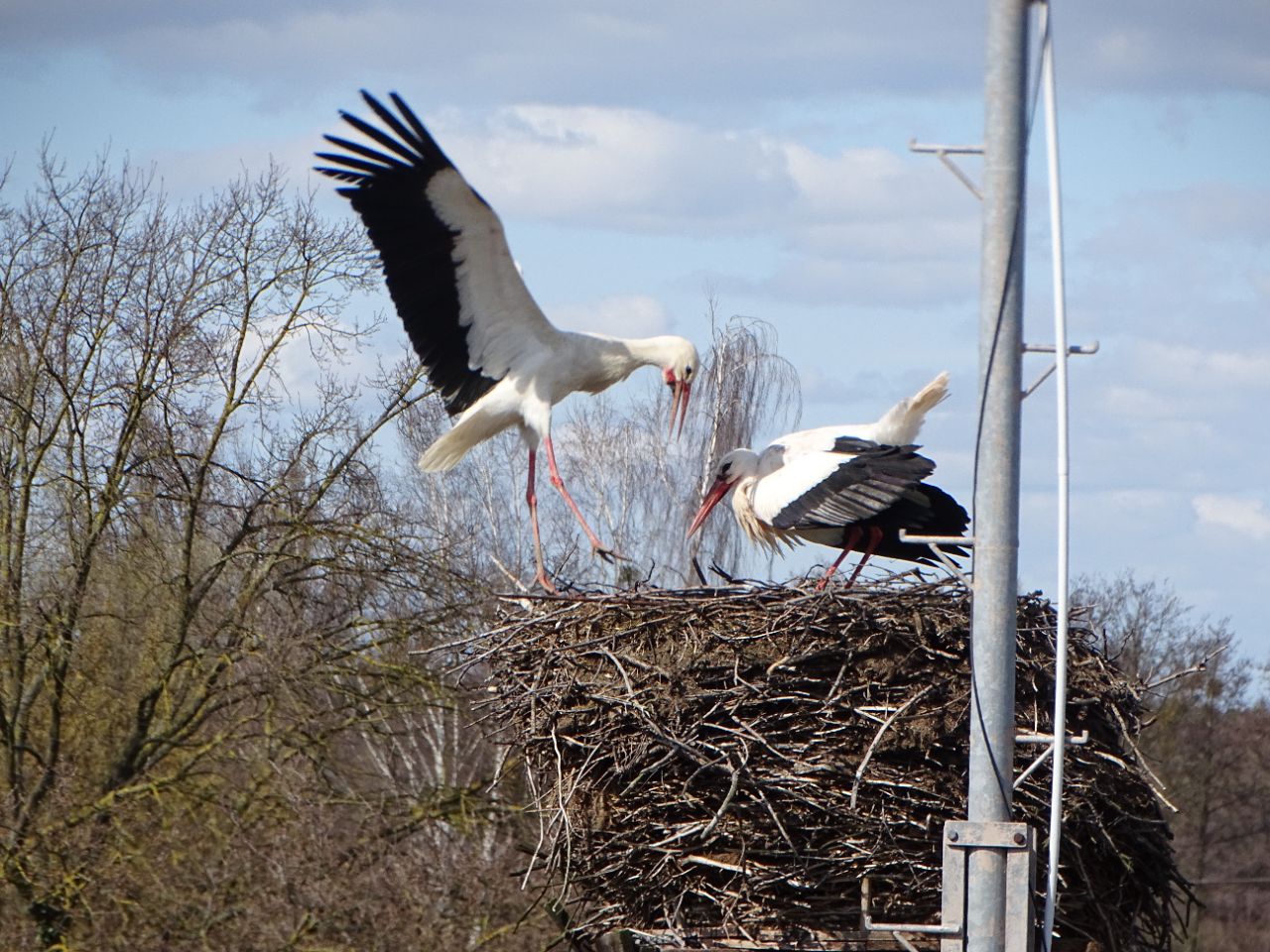 Die Störchin flog sogar eine Attacke gegen den Wiesenhorst; danach er.