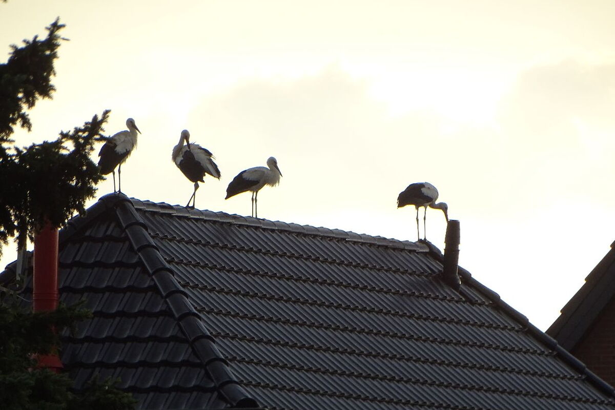 Zum Abend ließ sich gut die Hälfte der Vögel auf den Loburger Dächern nieder. Sie dekorierten dabei nicht nur Sehenswürdigkeiten wie die Burg, das Münchentor, das Barbycafé und die Kirche sondern verzierten allein, zu dritt oder gar zu sechst auch das eine oder andere Wohnhaus.