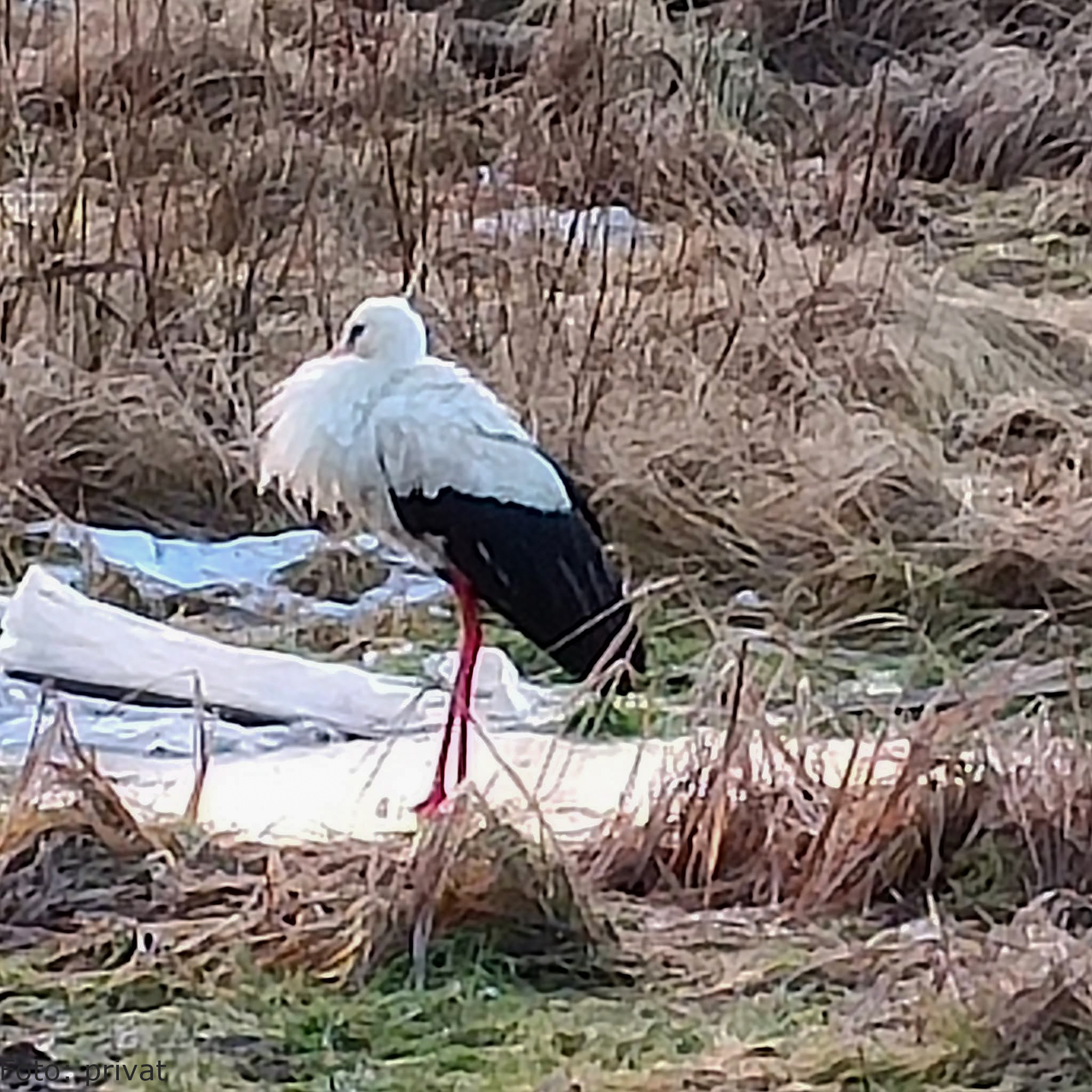 Zitat: "Auf einer Wiese am Ortsausgang starteten die aufgepäppelten Störche dann in die Freiheit. Die Originalfarbe von Gandalfs Gefieder werde sich schon wieder ergeben, ist man in der Vogelschutzwarte sicher."