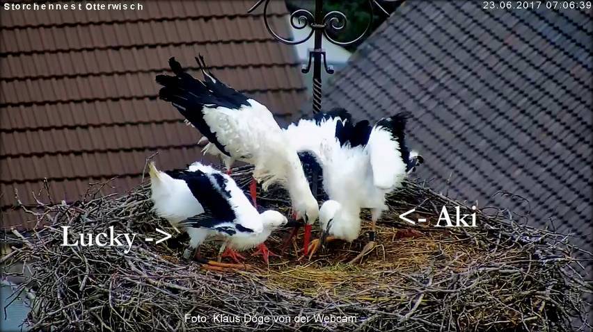 Die Live-Cam am Horst von Otterwisch hat den Einzug von Aki zu Lucky, seinem neuen Geschwisterchen und zu seinen neuen Eltern aufgezeichnet und Klaus Döge hat diese Videos auf der Webpage zur Ansicht hochgeladen. Leider war der Zugriff auf die Seite zu dieser Zeit so stark, dass Zuschauer wenig Chancen hatten, es selbst zu beobachten.