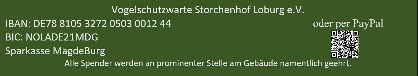 Über den aktuellen Projektstand und, ob wir unser Spendenziel bis dahin vielleicht sogar schon erreichen konnten, informieren wir am 19. Oktober anlässlich der 31. Sachsen-Anhaltischen Storchentage in der Stadthalle in Möckern (und auf unserer Homepage: www.storchenhof-loburg.de).